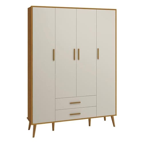 Guarda Roupa Infantil 4 Portas Isis Areia Acetinado Savana - Reller