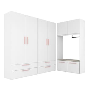 Guarda Roupa Infantil 8 Pts 4 Gav E Puff Baú Joy Bco/rosa/l.bege - M.a - Branco