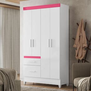 Começou a montar o quartinho do seu pequeno? Então apresentamos para você este belo guarda roupa da linha Madri. Com um design moderno, conta com quatro portas e duas gavetas equipadas com corrediças metálicas, garantindo um deslizamento suave e seguro. Seu ótimo espaço interno permite acomodar as roupinhas e acessórios com facilidade. O destaque e a opção flex no momento da montagem, nas cores branco/ rosa/ azul/ lilás, personalizando de acordo com o ambiente. Além disso, os pés em PVC proporcionam mais estabilidade e facilidade na limpeza. Fabricado pela Moval, é desenvolvido em MDP de qualidade. Sendo a escolha perfeita para busca praticidade, organização e um toque de charme para o quarto do seu filho, aproveite!