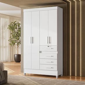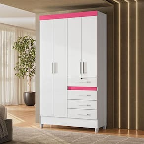 Começou a montar o quarto do seu filho? Então apresentamos para você este belo guarda roupa da linha Sobral. Com o inovador sistema flex, pode escolher as opções ndas cores na hora da montagem: branco/ rosa/ azul/ lilás, garantindo uma combinação perfeita no ambiente. Com quatro portas e quatro gavetas equipadas com corrediças metálicas, sendo a primeira com chave para maior segurança. Oferece um amplo espaço interno para acomodar as roupinhas e acessórios do seu pequeno. Os puxadores em MDF dão um design sofisticado, enquanto os pés em PVC proporcionam mais estabilidade e durabilidade. Fabricado pela Moval, é desenvolvido em MDP de qualidade. Sendo perfeito para quem busca praticidade e organização para compor o quarto do seu filho, aproveite!