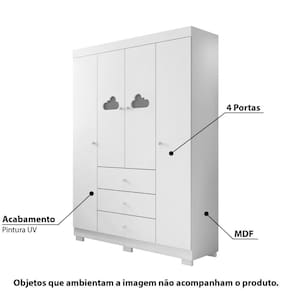 O Guarda Roupa Infantil Ane foi inspirada na decoração clássica, no intuito de trazer aconchego e elegância ao quarto. Tem um design que mescla o clássico com o contemporâneo trazendo ainda mais elegância para o quartinho das crianças. São 4 portas, 3 gavetas e 2 nichos, possibilitando organizar as roupinhas da melhor maneira possível. Um móvel para trazer beleza e aconchego ao quarto das crianças.