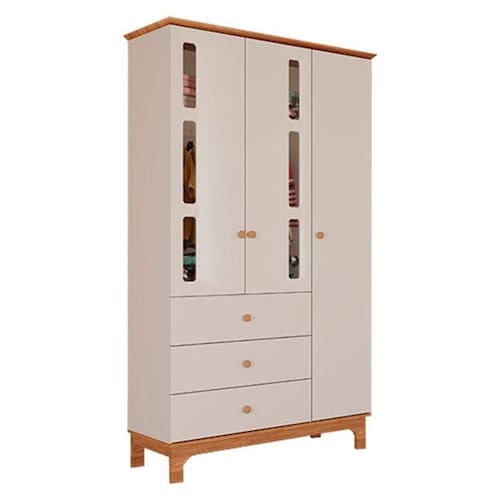 Guarda Roupa Infantil Antonella 3 Portas Off White Caramelo Canaã