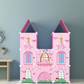 Guarda Roupa Infantil Armario Princesa Modular 8 Portas Organizador Castelo Decorativo Brinquedos Sapatos Estante Multif