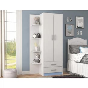 O Guarda-Roupa Infantil Atalaia da Evidência Móveis é produzido com materiais de alta qualidade, garantindo resistência e durabilidade. Suas 2 portas, 2 gavetas e 4 prateleiras externas oferecem amplo espaço para organização e armazenamento de roupas e objetos.