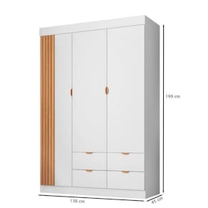 Proporcione conforto e praticidade para as mães com o Guarda Roupa Infantil Ayla 3 portas 4 gavetas Phoenix Baby. Além de oferecer um espaço amplo e organizado para as roupas e acessórios do bebê, este guarda-roupa é projetado para elevar o nível de conforto no ambiente do quarto infantil. Sua estrutura em 100% MDF garante durabilidade e segurança, enquanto a pintura UV semibrilho adiciona um toque de elegância. Com corrediças telescópicas que garantem suavidade ao abrir e fechar as gavetas, e ripamento em MDF, este guarda-roupa é a escolha ideal para manter tudo no lugar de forma prática e funcional. Renove o espaço do seu bebê com estilo e conforto com o Guarda Roupa Infantil Ayla. Acabamento da Prateleira: Pintura UV Escala de Brilho da Prateleira: Semi-Brilho Possui Cabideiros: Sim Acabamento da Gaveta: Pintura UV Escala de Brilho da Gaveta: Semi-Brilho Material do Puxador da Gaveta: Alumínio Possui Organizador de Gaveta: Não Acabamento da Porta: Pintura UV Escala de Brilho da Porta: Semi-Brilho Material do Puxador da Porta: MDF codigo_ean: 7899741115066 Complexidade da Montagem: Média: pode ser montado por mais de uma pessoa e/ou necessite de maior conhecimento para montagem Cor: Branco Cor do Produto: Branco Cor Interna: Branco Escala de Brilho: Semi-Brilho Gaveta com Chave: Não Itens Inclusos: 1 Guarda-Roupa, Kit Ferragens e Manual de Montagem Linha ou Coleção: Ayla Manual de Montagem e Instalação: https://product-hub-prd.madeiramadeira.com.br/906151/documents/390b041c-b822-4445-902b-65fe6de37ba31931080grayla3pta.pdf Material da Gaveta: MDF Material da Porta: MDF Material da Prateleira: MDF Material Principal: MDF modular: Não Necessita Montagem: Sim Origem do Produto: Importado Peso: 92,75 kg Peso Máximo por Gaveta: 4 kg Peso Máximo por Prateleira: 5 kg Possui Calceiros: Não Possui Espelho: Não Possui Pés: Não Possui Portas: Sim Possui Prateleiras: Sim Produto Montado: Sim Quantidade de Gavetas: 04 Gavetas Quantidade de Prateleiras: 05 Prateleiras Recomendações de Uso, Manutenção e Limpeza: Para Limpeza Utilizar Pano Seco Sistema de Montagem: Minifix, Parafusos e Cavilhas Tipo de Corrediça da Gaveta: Metálica Telescópica Tipo de Dobradiça/Corrediça da Porta: Alumínio Tipo de Gaveta: Externa Tipo de Guarda-Roupa: Infantil Tipo de Puxador da Gaveta: Externo Tipo de Puxador da Porta: Externo