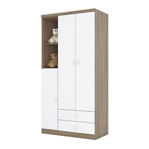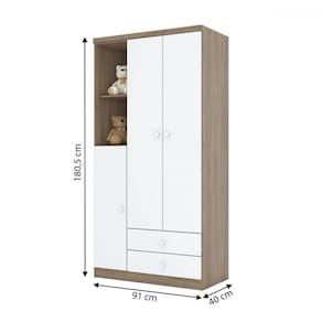 O(a) Guarda Roupa Infantil Bala de Menta 3 Portas 2 Gavetas Rústico/Branco - Henn é produzido em MDF e MDP na escala de brilho Fosco, e possui um grau de dificuldade de montagem: Médio.