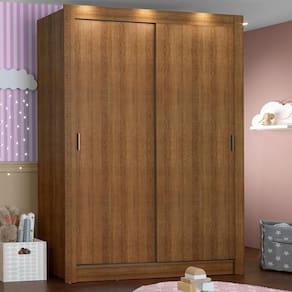 - Itens inclusos: Duas gavetas com corrediças metálicas | Um cabideiro metálico grande | Duas prateleiras | Três nichos | Duas portas de correr de madeira com puxadores em PVC