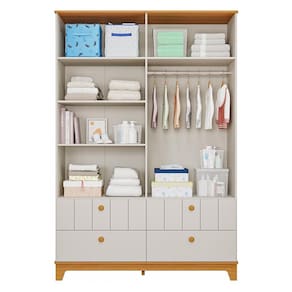 O Guarda Roupa Infantil Biscoito possui uma estrutura resistente em MDF e acabamento em pintura UV, este guarda-roupa oferece durabilidade e estilo para o ambiente infantil. Com 4 portas, 4 gavetas espaçosas e prateleiras internas, proporciona amplo espaço para organizar roupas, acessórios e brinquedos. As dobradiças metálicas e corrediças telescópicas garantem suavidade e durabilidade no uso diário. Além disso, conta com puxadores em madeira maciça, adicionando um toque de charme ao móvel. Com pés em MDF e capacidade para suportar até 3kg em cada gaveta, este guarda-roupa é a escolha perfeita para manter o quarto do seu filho organizado e funcional por muito tempo. Transforme o espaço do seu pequeno em um ambiente acolhedor e encantador com o Guarda Roupa Infantil Biscoito.