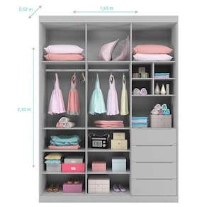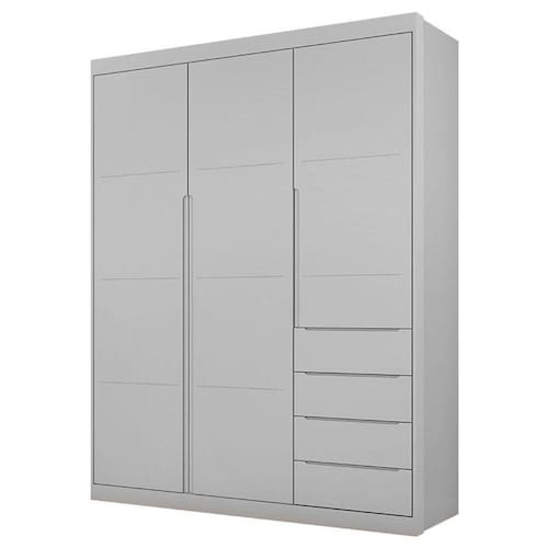 Guarda Roupa Infantil Blenda Cinza Acetinado - Phoenix Baby A guarda roupa infantil ideal para o quarto do seu bebê você encontra aqui, apresentamos mais um lindo modelo, Guarda Roupa Infantil Blenda na cor Cinza Acetinado desenvolvida pela Phoenix Baby apresenta um amplo espaço auxiliando a mamãe na hora de organizar todas as roupas e acessórios do bebê, seu lindo design também vai auxiliar na decoração do quarto infantil confira! Características técnicas - Desenvolvida em MDF - Cor Cinza Acetinado - 3 portas com detalhes usinados - Dobradiças em metal - Puxadores usinados ergonômicos - 4 Gavetas com corrediças telescópicas livres de qualquer enrosco no abrir e fecha - Repartição nicho - Maleiro - Cabideiro - Prateleiras auxiliando na organização das roupas e acessórios do bebê - Amplo espaço - Lindo design Dimensões: Altura: 220 cm Largura: 165 cm Profundidade: 52 cm Obs: Não realizamos a montagem porem acompanha manual de montagem