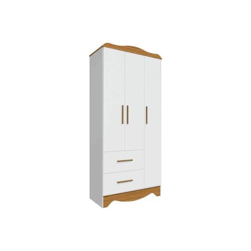 Guarda Roupa Infantil Clara C/ 3 Portas Lisa E 2 Gavetas Branco Brilho/amendoa - Peroba