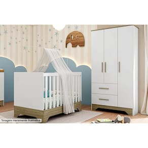 Guarda Roupa Infantil Clara c/ 3 Portas Lisa e 2 Gavetas Branco Brilho/Amendoa - Peroba Marca: Móveis Peroba