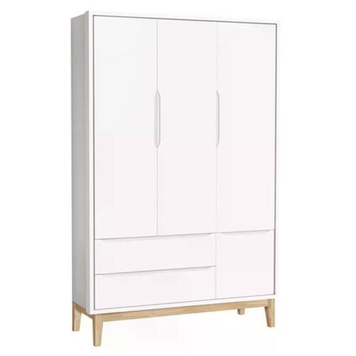 Guarda Roupa Infantil Classic 3 Portas com Pés Madeira Natural - Reller Móveis - Branco