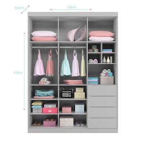 Guarda Roupa Infantil Com 3 Portas e 4 Gavetas Pérola Cor Cinza Phoenix Baby