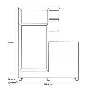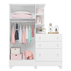 Produto: Guarda Roupa com Comoda Doce Sonho Branco - Qmovi Pensado para quem precisa de otimização no espaço, o módulo Guarda Roupa com Cômoda da linha Doce Sonho, é perfeito para acomodar os objetos do bebê com praticidade e comodidade. Organize tudo o que você precisa em um só lugar com este móvel moderno e funcional. Caracteristicas: • Embalagem feita com papelão revestido por plástico, com isomanta e com BUP's (proteção de cantos) para garantir a qualidade do produto; • Excelente acabamento revestido em pintura UV, que dá maior destaque à cor; • Estrutura produzida com materiais de alta qualidade. Cuidados com o Produto: Não utilize produtos químicos ou abrasivos para limpar seus móveis. A manutenção em geral, exige apenas a retirada do pó com um pano seco. Mas, a limpeza também pode ser feita utilizando um pano levemente umedecido com água e/ou álcool. Em seguida, a superfície deve ser seca com a ajuda de um pano limpo e macio. Não expor o produto diretamente à luz solar. Sistema de Montagem: Para a montagem do produto, consulte o esquema de montagem incluso na embalagem. Tempo médio de montagem: 90 min Garantia: 90 Dias Material: Mdp 15 / 12 Acabamento: Pintura Uv Escala de Brilho: Brilho / Toq Fosco Quantidade de Portas: 2 Peso Suportado: 60 Kg Dist E S/Impacto Peso Suportado Cabideiro: 15 Kg Dist E S/Impacto Quantidade de Gavetas: 3 Peso Suportado por Gavetas: 5 Kg Dist E S/Impacto Quantidade de Prateleiras: 4 Peso Suportado por Prateleira: 3 / 7 / 10 Kg Dist E S/Impacto Peso Suportado por Tampo: 7 Kg Dist E S/Impacto Altura: 141,8 Largura: 120,6 Profundidade: 42 Peso: 47,6