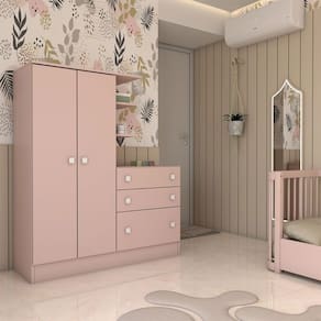 O(a) Guarda-Roupa Infantil com Cômoda Colorê 2 Portas 3 Gavetas Rosa - Loja é produzido em MDP na escala de brilho Semi-Brilho, e possui um grau de dificuldade de montagem: Médio.