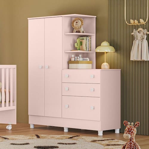 O(a) Guarda-Roupa Infantil com Cômoda Doce Sonho 2 Portas 3 Gavetas Rosa - Qmovi é produzido em MDP na escala de brilho Semi-Brilho, e possui um grau de dificuldade de montagem: Médio.
