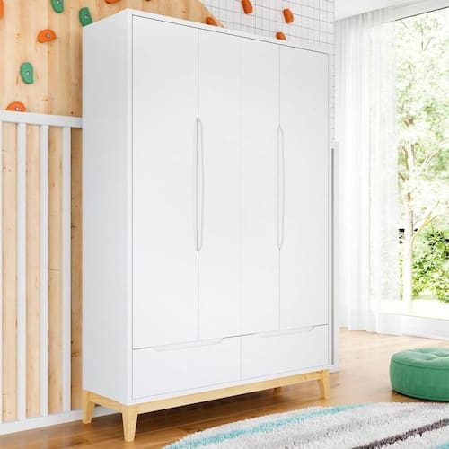 Linha: Amor Perfeito | Materiais da Estrutura: MDF e Madeira | Tamanho do Guarda Roupa: Solteiro | Com Portas: Sim | Quantidade de Portas: 4 | Tipos de abertura das portas: Giro | Com Gavetas: Sim | Com Prateleiras: Sim | Quantidade de Prateleiras: 7 | COR: Branco | Cor: branco