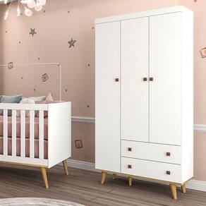 Chegou a hora de escolher o guarda roupa ideal para o quartinho do seu pequeno mamãe, apresentamos essa linda e especial opção da linha Fernanda desenvolvida com todo amor, cuidado e carinho para vocês, o Guarda Roupa 3 Portas e 2 Gavetas foi desenvolvido com materiais de excelentes qualidades para maior durabilidade e resistência do móvel, conta com amplo espaço interno e ótimas repartições para maior praticidade no seu dia a dia e organização das roupinhas e acessórios do seu baby, sistema de travas Anti-Tombamento fixada na parede para maior segurança de todos e prevenção de acidentes, possui um lindo e delicado design na cor Branco Acetinado com pés em madeira maciça na cor Bétula proporcionando modernidade, tranquilidade e conforto ao ambiente. Não deixe de aproveitar e garantir o seu, você ira se apaixonar!