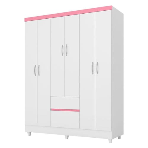 Guarda Roupa Infantil Flash 2 Branco Rosa Flex – Demóbile