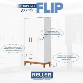 Guarda Roupa Infantil Flip 3 Portas Branco Acetinado - Reller