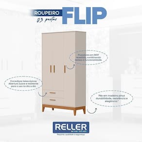 Guarda Roupa Infantil Flip 3 Portas e 2 Gavetas - Reller Móveis