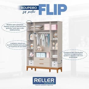 Guarda Roupa Infantil Flip 4 Portas Areia Acetinado - Reller