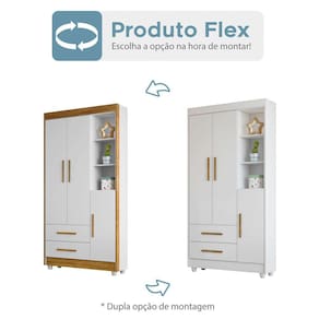 O(a) Guarda-Roupa Infantil Flocos 3 Portas 2 Gavetas Flex Branco/Ypê/Branco - Tigus é produzido em MDF na escala de brilho Fosco, e possui um grau de dificuldade de montagem: Médio.