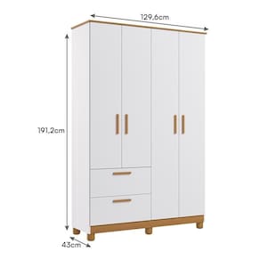 Guarda Roupa Infantil Jujuba 4 Portas E 2 Gavetas Nature/branco - Permóbili Baby Nature/branco Guarda Roupa Infantil Jujuba 4 Portas e 2 Gavetas - Permóbili Baby O Guarda Roupa Infantil Jujuba 4 Portas é o sonho de qualquer criança e dos pais que buscam qualidade e praticidade. Sua estrutura em MDF com pintura UV garante resistência e um visual encantador para o quarto dos pequenos. Com quatro portas e duas gavetas, oferece amplo espaço para organizar roupas, brinquedos e acessórios. As dobradiças metálicas e corrediças telescópicas garantem durabilidade e suavidade no abrir e fechar. Além disso, possui cabideiro, prateleiras internas e puxadores em ABS, detalhes que agregam funcionalidade e charme ao móvel. Com capacidade para até 3kg em cada gaveta, é a escolha ideal para completar o quarto dos pequenos com conforto e elegância. ESPECIFICAÇÕES: - Estrutura em MDF - Pintura UV - 4 Portas - Dobradiças metálicas - 2 Gavetas - Corrediças telescópicas - Cabideiro - Prateleiras internas - Puxadores em ABS - Pés em ABS - Suporta até 3Kg em cada gaveta