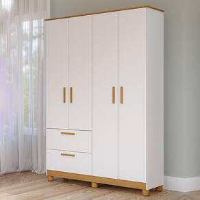 ESPECIFICAÇÕES: Estrutura em MDF Pintura UV 4 Portas Dobradiças metálicas 2 Gavetas Corrediças telescópicas Cabideiro Prateleiras internas Puxadores em ABS Pés em ABS Suporta até 3Kg em cada gaveta