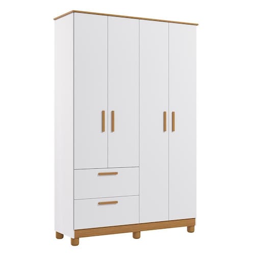 ESPECIFICAÇÕES: Estrutura em MDF Pintura UV 4 Portas Dobradiças metálicas 2 Gavetas Corrediças telescópicas Cabideiro Prateleiras internas Puxadores em ABS Pés em ABS Suporta até 3Kg em cada gaveta