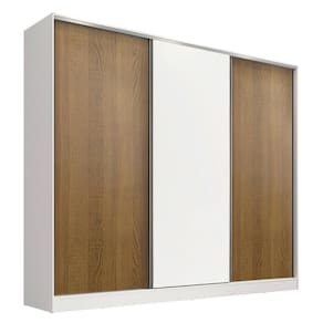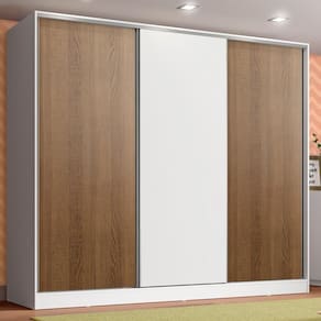 - Itens inclusos: Três (3) cabideiros | Quatro (4) gavetas internas | Oito (8) prateleiras | Três (3) portas de correr com sistema anti-descarrilhamento