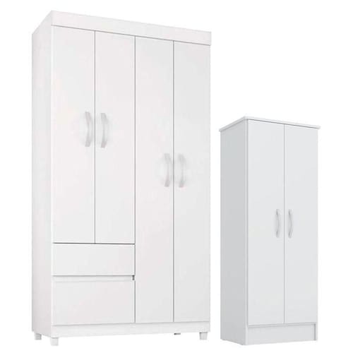Guarda Roupa Infantil Lótus e Armário Multiuso Viena Branco Brilho - Demóbile
