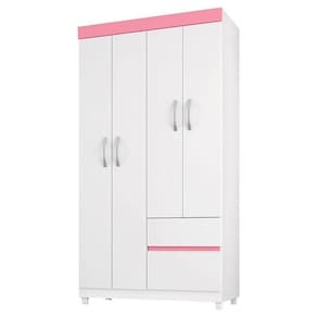 Guarda Roupa Infantil Lótus e Armário Multiuso Viena Branco Rosa Demóbile