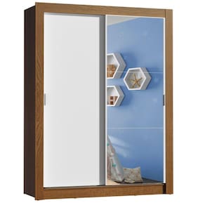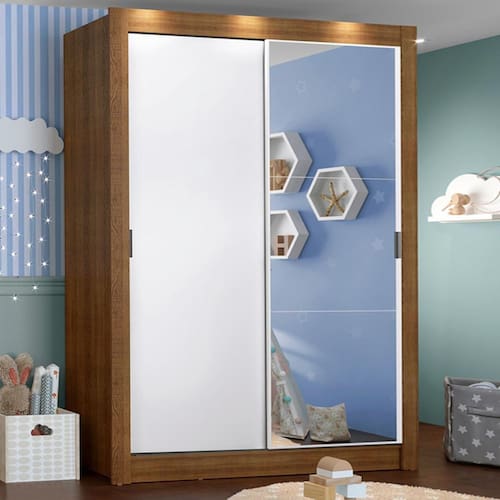 Guarda-Roupa Infantil Madesa Bento 2 Portas de Correr com Espelho 2 Gavetas - Marrom