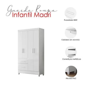 Guarda Roupa Infantil Madri 4 Portas Branco - Moval