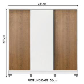 - Itens inclusos: Três cabideiros | Quatro gavetas internas | Oito prateleiras | Três portas de correr com sistema anti-descarrilhamento