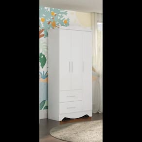 O Armário Clara 3 Portas Lisas Plus é um produto 100% MDF e possui pintura atóxica. Sua estrutura é fabricada em chapa de 12 mm, sendo seu tampo superior em chapa de 15 mm. Possui puxadores em MDF revestido com papel melamínico, cabideiro metálico e gavetas com corrediças telescópicas. Acompanha dois modelos de rodapés que podem ser definidos no momento da montagem.