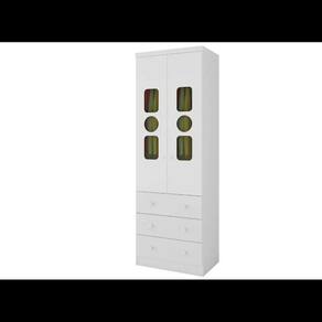 O Armário Tedy New 2 Portas é um produto 100% MDF e possui pintura atóxica. Sua estrutura é fabricada em chapa de 12 mm. Possui puxadores plásticos e cabideiro metálico. As gavetas possuem corrediças apoiadas metálicas e suas portas possuem detalhe com PETG cristal. Acompanha dois modelos de rodapés que podem ser definidos no momento da montagem e aceita adaptação de kit pés.
