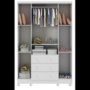 O Armário Tedy New 4 Portas é um produto 100% MDF e possui pintura atóxica. Sua estrutura é fabricada em chapa de 12 mm e seus pés são injetados em plástico de alta resistência. Os puxadores são também em plástico. Os cabideiros são metálicos e suas gavetas possuem corrediças apoiadas metálicas.