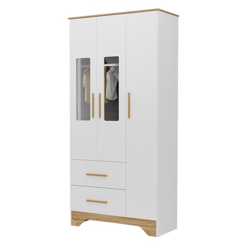 Guarda Roupa Infantil Popy Retrô Plus 3 Portas com Janelas e 2 Gavetas - Móveis Peroba