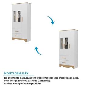 O Guarda-Roupa Infantil Popy Retrô Plus 3 Portas com Janelas e 2 Gavetas é ideal para quem busca charme, organização e funcionalidade no quarto infantil. Produzido em MDF com pintura UV atóxica, conta com 3 portas, sendo duas com janelas em PETG Cristal, que permitem visualizar o interior. Internamente, oferece cabideiro metálico, prateleiras e 2 gavetas com corrediças telescópicas, suportando até 4kg cada. Os puxadores em MDF revestidos complementam o visual retrô, assim como as duas opções de rodapés: um usinado e outro reto, permitindo personalizar o estilo do móvel conforme o ambiente. Um guarda-roupa completo e versátil para o dia a dia.