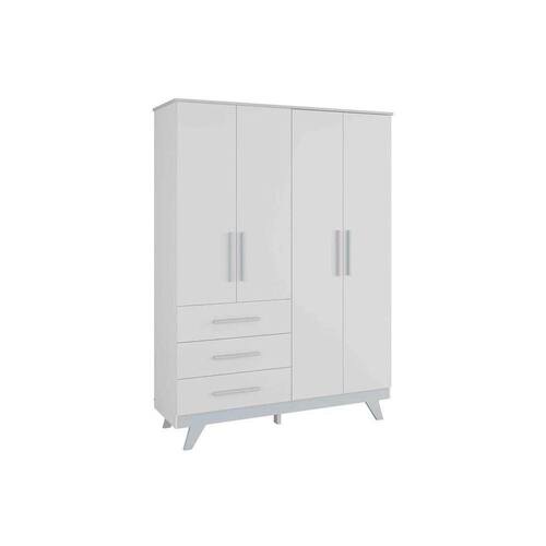 Material dos Cabideiros - Cabideira Metálico Tipo de Dobradiças - Dobradiças Metálicas Quantidade de Portas - 4 Portas de Abrir Tipo de Corrediça - c/ Corrediças Telescópicas Quantidade de Gavetas - 3 Diferenciais das Gavetas - c/ Divisórios Internas Tipo dos Pés - Pés de Madeira Quantidade de Prateleiras - 5