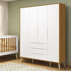 Guarda Roupa Infantil Retrô Elfe Branco Acetinado Savana Natural - Reller