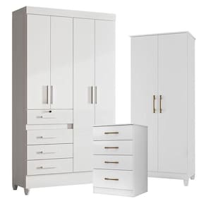 Guarda Roupa Infantil Sobral com Cômoda MS913 e Armário Multiuso Jade Branco Brilho Moval