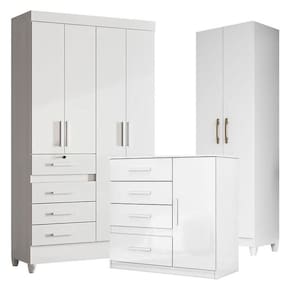 Guarda Roupa Infantil Sobral com Cômoda Vênus e Armário Multiuso New Íris Branco Brilho Moval