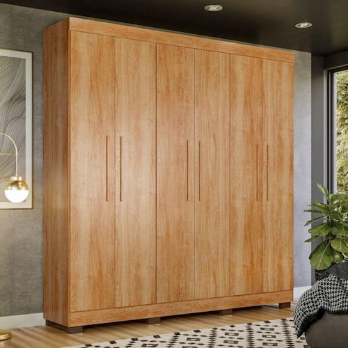 Um quarto funcional e bem arrumado precisa de um bom guarda-roupa, né? O modelo Flórida é a opção perfeita para você que busca mais praticidade e não abre mão de bom gosto na décor. Dispondo de portas e gavetas, ele tem compartimentos para suas peças vestuário, calçados, acessórios e até cosméticos ou roupas de cama - tudo depende da organização que melhor atender à sua rotina. Acabamento da Prateleira: Pintura UV Escala de Brilho da Prateleira: Semi-Brilho Possui Cabideiros: Sim Acabamento da Gaveta: Pintura UV Escala de Brilho da Gaveta: Semi-Brilho Possui Organizador de Gaveta: Não Acabamento da Porta: Pintura UV Escala de Brilho da Porta: Semi-Brilho Material do Puxador da Porta: MDF Acabamento dos Pés: Pintura Altura dos Pés: 5 Altura Máxima dos Pés: 3.0000 Ambiente Principal: Quarto Infantil codigo_ean: 7909903235683 Complexidade da Montagem: Média: pode ser montado por mais de uma pessoa e/ou necessite de maior conhecimento para montagem Cor: Amadeirado Cor do Produto: Amadeirado Escala de Brilho: Fosco Informações Complementares: Roupeiro com 6 portas e 4 gavetas internas. Possui 2 cabideiros, 10 prateleiras. Dobradiças metálicas de pressão. Corrediças metálicas telescópicas. Acabamento interno identico ao externo. Produto com ótima divisão interna. Acabamento Ultravioleta atóxi Itens Inclusos: 1 Guarda Roupa, Kit Ferragens e Manual de montagem. Manual de Montagem e Instalação: https://cdn2.madeiramadeira.com.br/atributo/tigus-baby/1147909-manual-roupeiro-florida-6p-revisao-00.pdf Material da Gaveta: MDF Material da Porta: MDF Material da Prateleira: MDF Material dos Pés: MDF Material Principal: MDF Necessita Montagem: Sim Origem do Produto: Nacional Peso: 168 kg Peso Máximo por Gaveta: 10 kg Peso Máximo por Prateleira: 20 kg Possui Calceiros: Não Possui Espelho: Não Possui Pés: 08 Possui Portas: Sim Produto Montado: Sim Recomendações de Uso, Manutenção e Limpeza: Não utilizar produtos químicos. Não utilizar produtos abrasivos. Não molhar. Utilizar pano macio e seco ou levemente umedecido. Sistema de Montagem: Parafusos, cavilhas e cantoneiras. Suporta Até (kg): 190 kg Tipo de Corrediça da Gaveta: Metálica Telescópica Tipo de Dobradiça/Corrediça da Porta: Metálica Tipo de Guarda-Roupa: Solteiro Tipo de Puxador da Porta: Externo