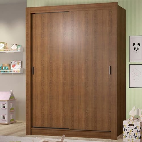 - Itens inclusos: Quatro gavetas com corrediças metálicas | Um cabideiro metálico grande | Duas prateleiras | Três nichos | Duas portas de correr de madeira com puxadores em PVC