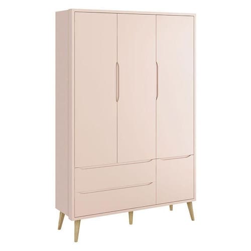 Guarda Roupa Infantil Theo 3 Portas Rosa com Pés Madeira Natural ? Reller