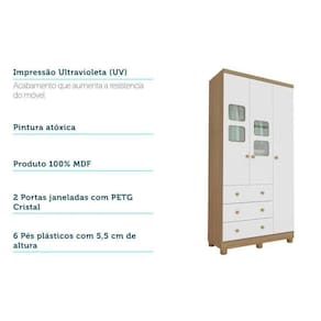 CARACTERÍSTICAS DE MÓVEIS Tipo de Estrutura do Móvel - 100% MDF Tipo de Pintura - UV Tipo de Acabamento da Pintura - Semi Brilho Tipo de puxador - ABS/PVC Quantidade de Prateleiras - 3 Prateleiras Quantidade de Gavetas - 3 Diferenciais da Gaveta - c/ Corrediças Telescópicas Quantidade de Portas - 3 Portas de Abrir Garantia - 3 meses