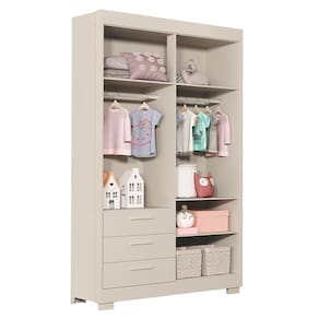 Organização, praticidade e um visual encantador para o quarto dos pequenos. O Guarda-Roupa Infantil Zaki é fabricado em MDF com pintura UV atóxica, garantindo e durabilidade. Conta com 4 portas com dobradiças metálicas, 3 gavetas com corrediças telescópicas que deslizam com suavidade, cabideiro metálico para melhor organização das roupinhas e puxadores em MDF que complementam o design delicado. Os pés em PVC garantem firmeza e elevação do móvel. Uma escolha perfeita para quem busca funcionalidade e charme no dormitório infantil.